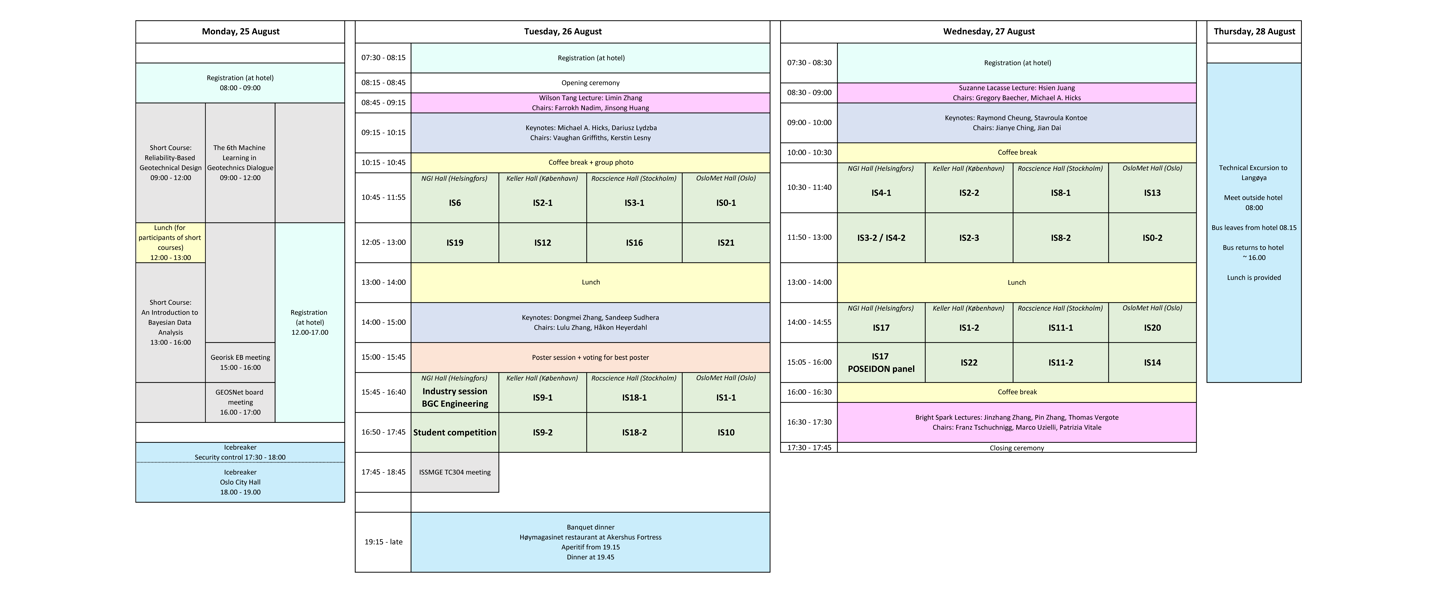 | Monday, August 25th | Short courses 6th Machine Learning in Geotechnics Dialogue (MLIGD) Technical Committee meetings Registration Icebreaker |